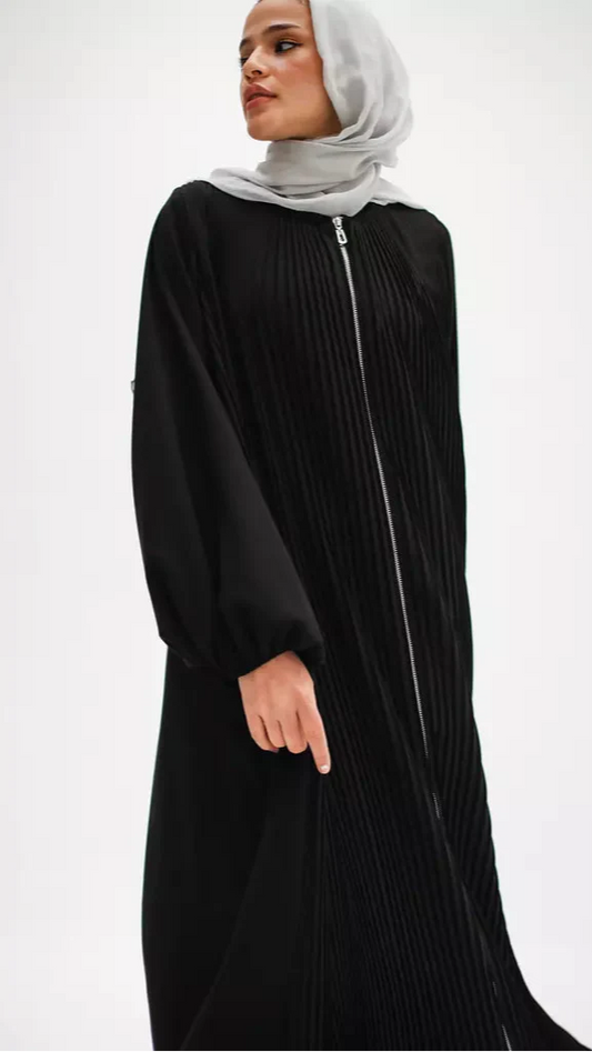 Full zipper pleated abaya - Modesty
