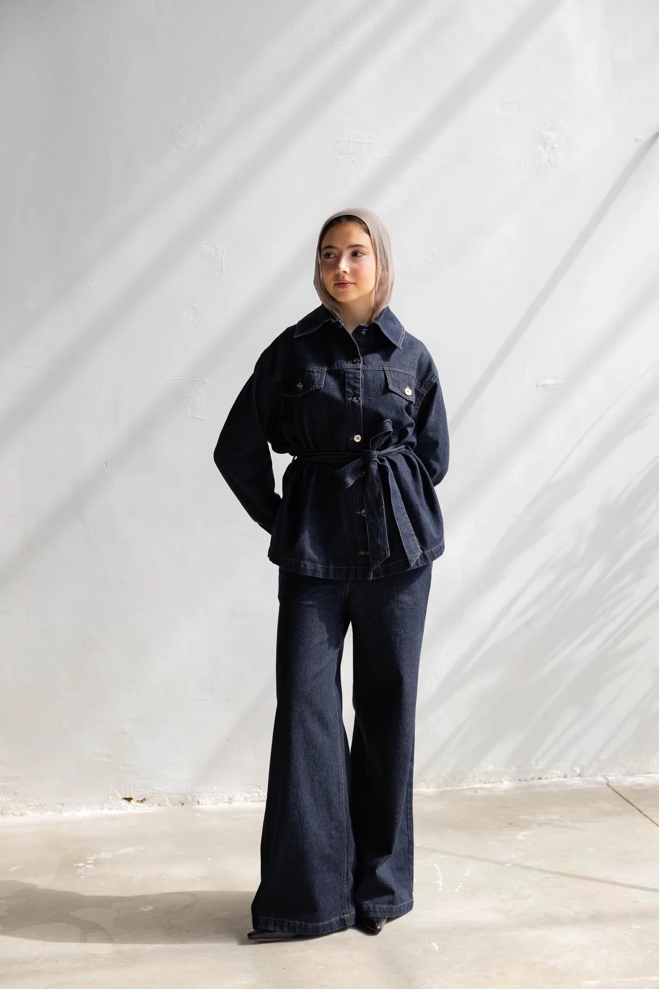 The Denim Muse Set is your go-to for effortless style. Featuring a perfectly tailored denim jacket and matching wide-leg jeans, this set combines modern design with timeless versatility — ideal for casual outings or a polished everyday look.