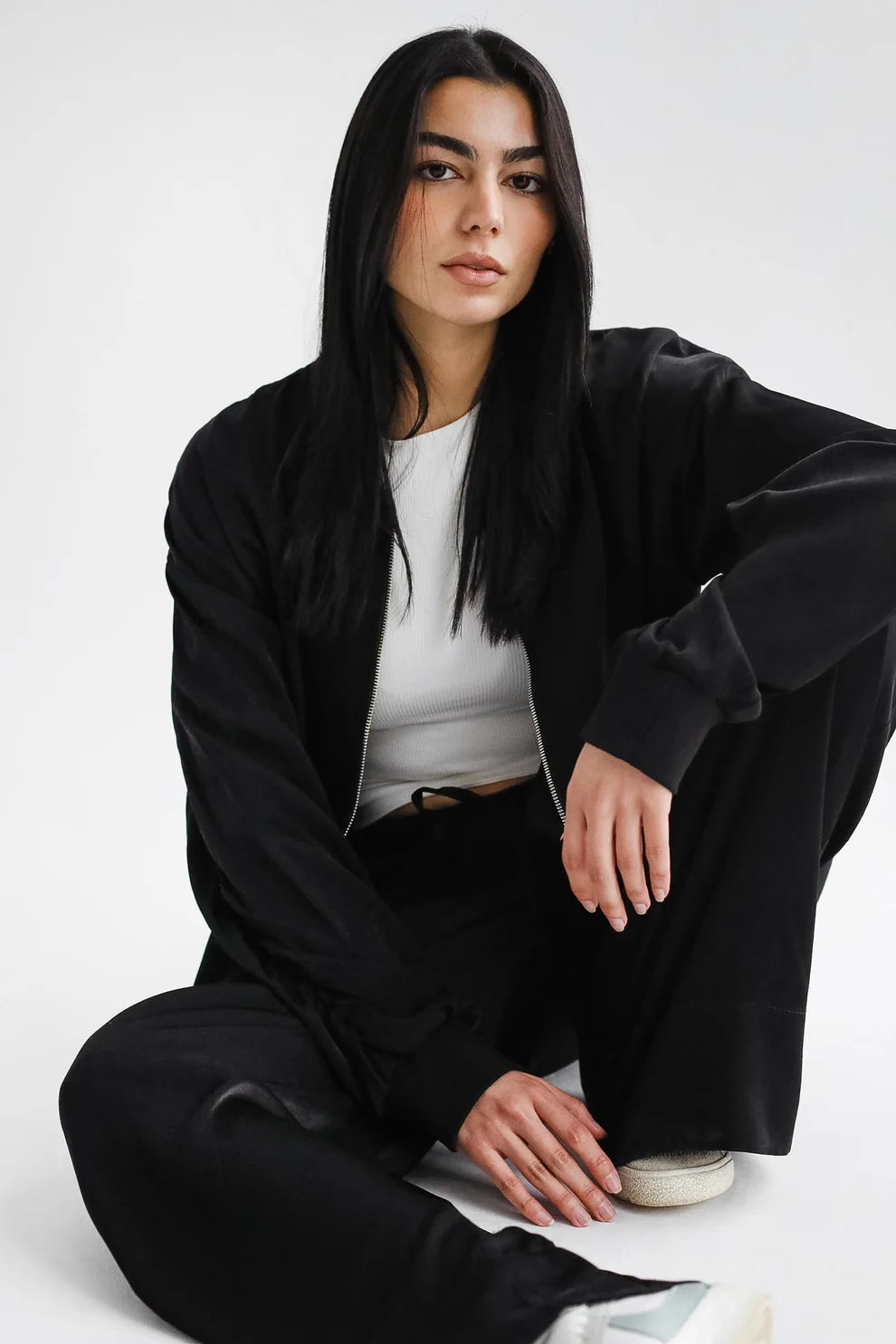 Experience the perfect blend of style and comfort with our Satin Bomber Set, featuring a sleek design and sumptuous satin fabric.